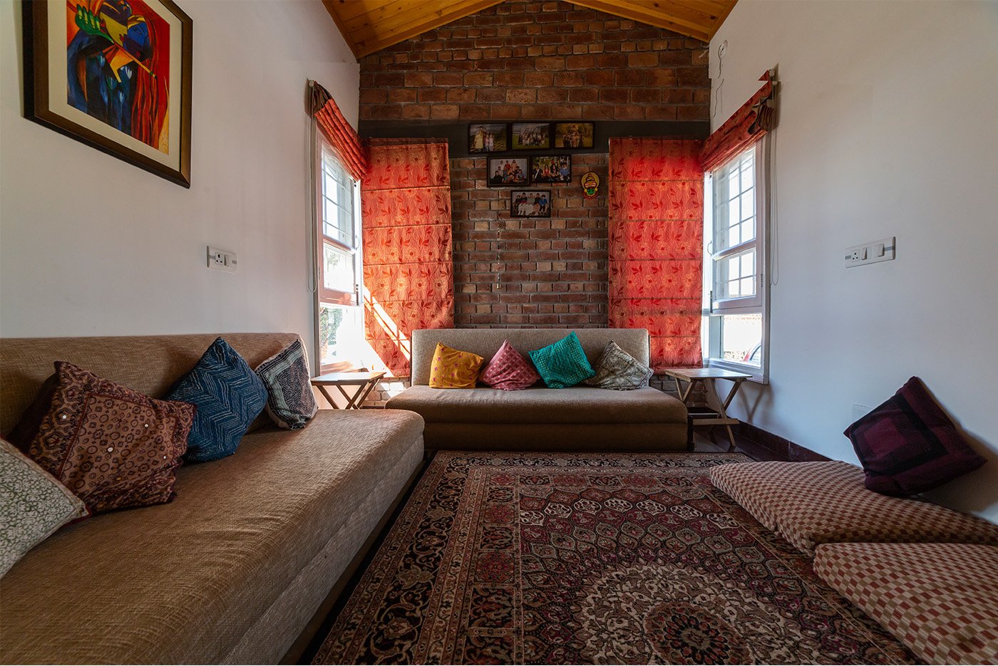 A 4-Bedroom, double storied bungalow on a half an acre land, located a little away from the bustle and noise of the city. The bedrooms are neatly tucked away from the living areas by a carefully planned catwalk, with open-to-air gardens on both sides of it, making it a pleasure every time you walk to the bedrooms from the living area. The terrace on the first floor as well as the sprawling lawns in front, overlook the Mussoorie ridges and makes for a beautiful experience.